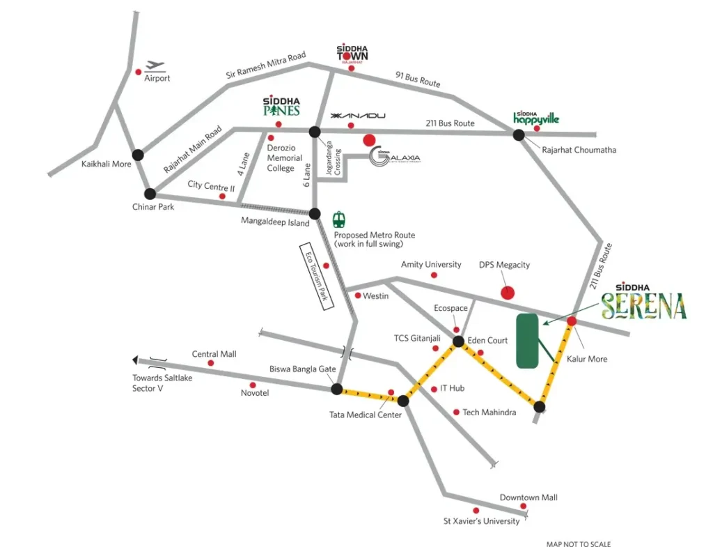 Welcome to Siddha Serena, a signature residential development by Serena by Siddha Group, strategically located in Newtown, Kolkata. It is just 3 minutes from DPS Megacity with convenient dual access from Rajarhat and Newtown. Designed for those who value calm, space, and modern living, Siddha Serena Kolkata surrounds you with tranquil landscapes, lush greenery, and soothing waterscapes.